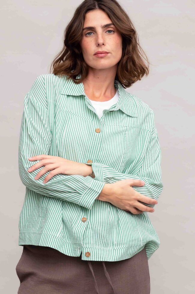 ז'קט דק מכותנה עם כיסים וכפתורים