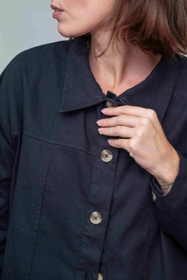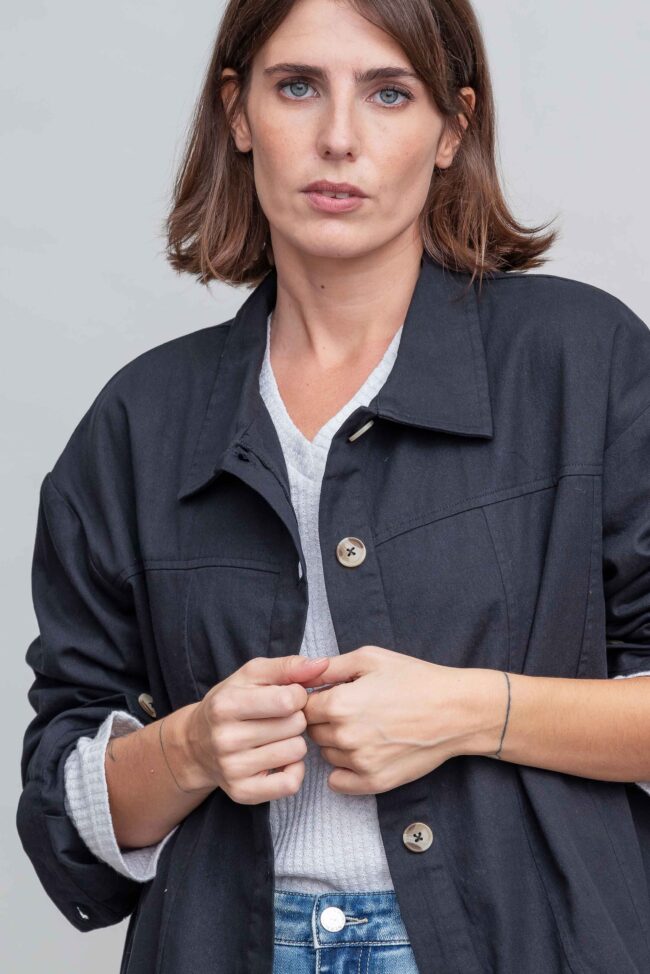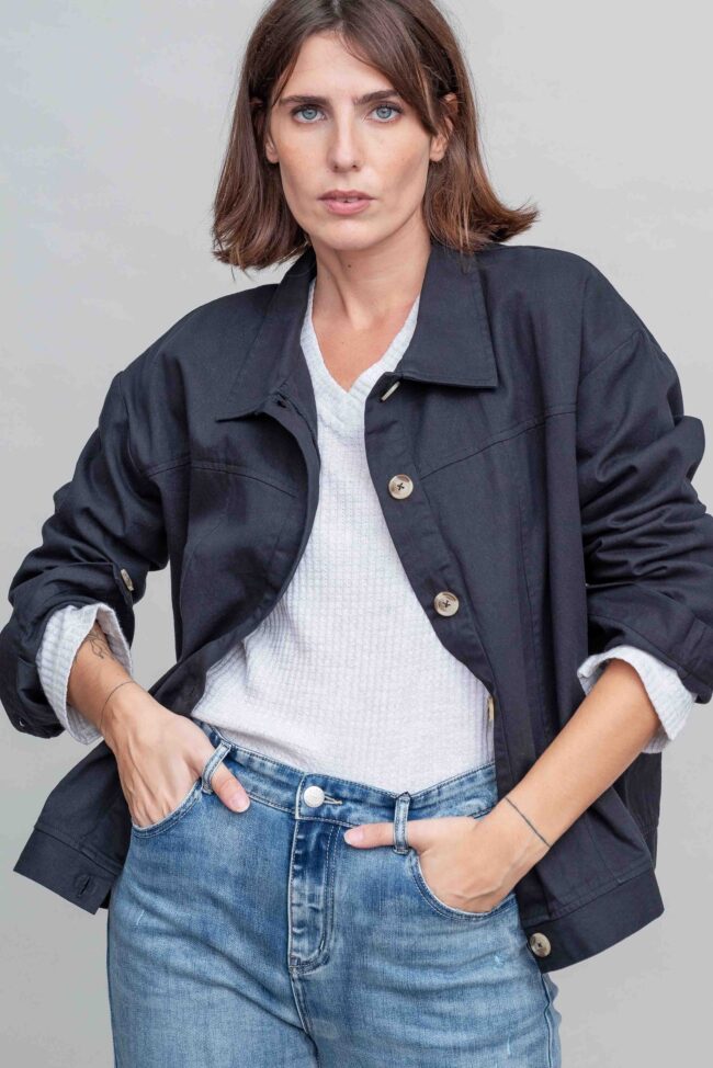 ז'קט בגזרה משוחררת עם כפתורים וצווארון גברי