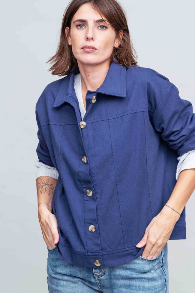 ז'קט בגזרה משוחררת עם כפתורים וצווארון גברי