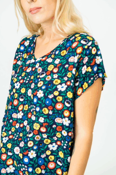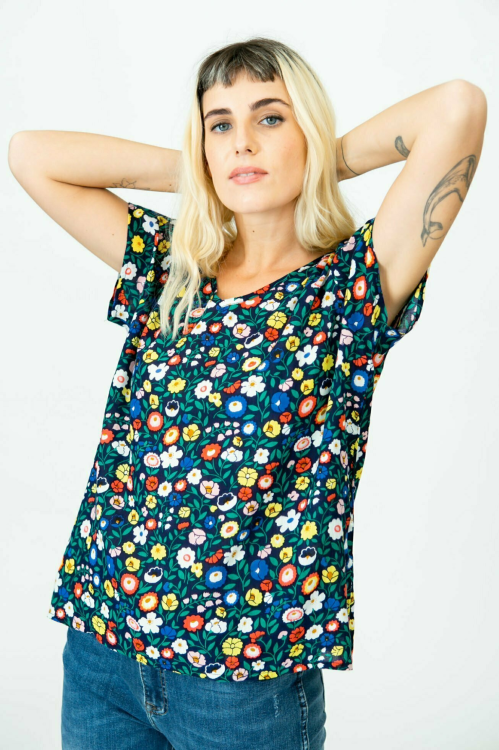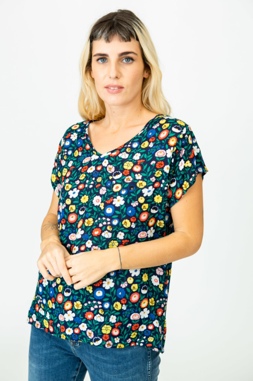 חולצה בגזרה משוחררת עם מפתח v ושליץ בצד