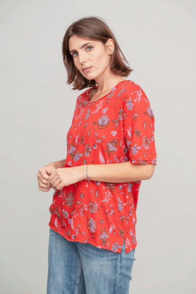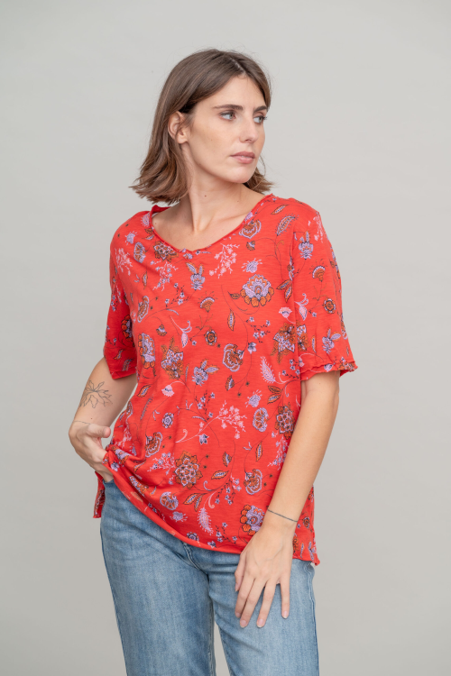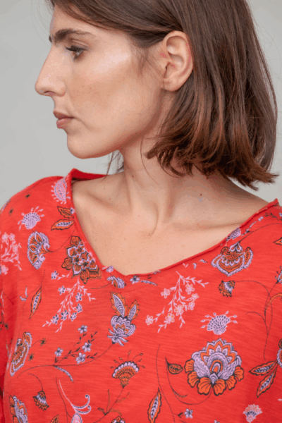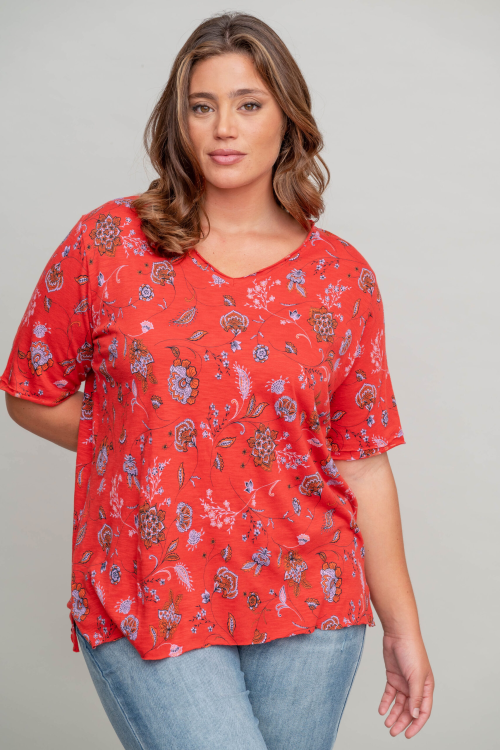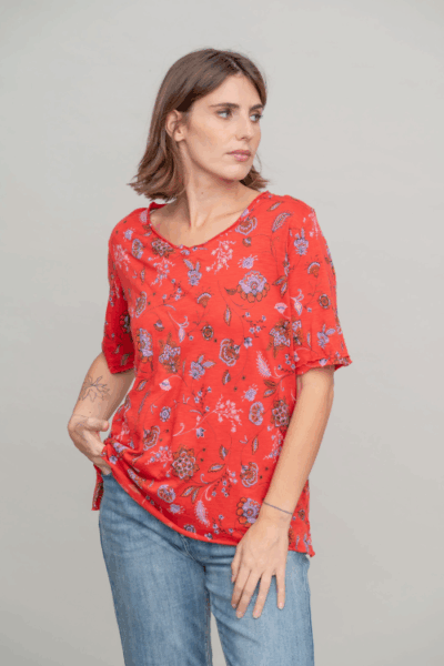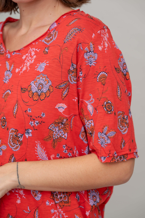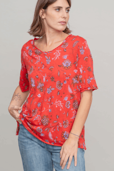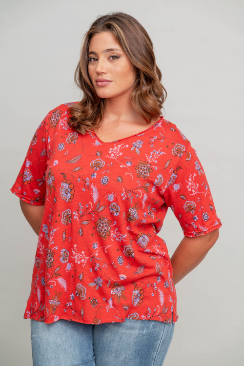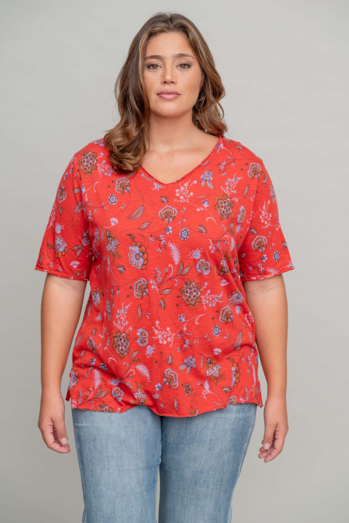 חולצת בייסיק עם מחשוף וי וגימור גזור