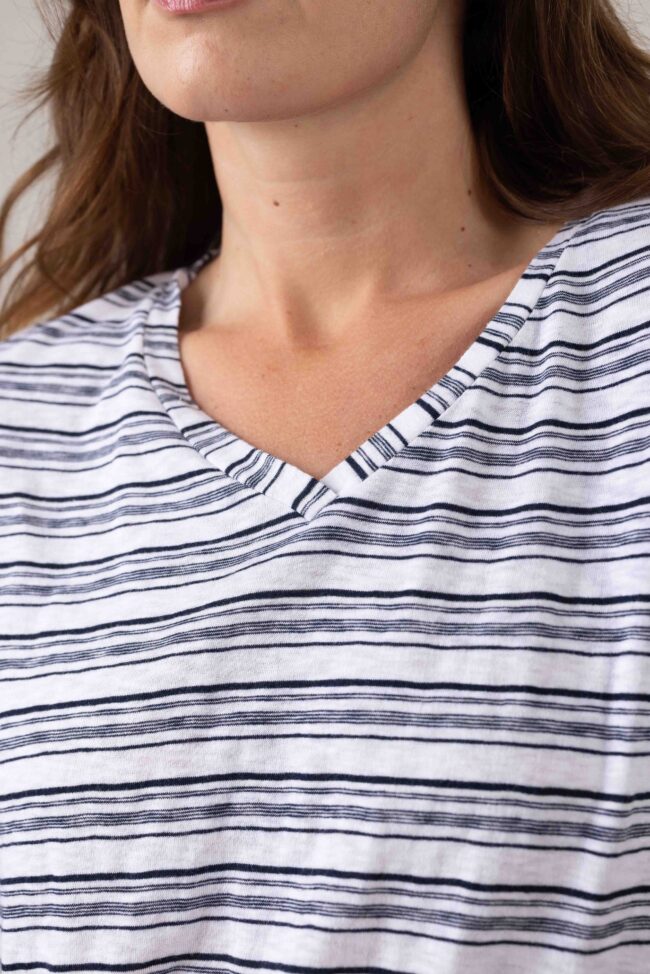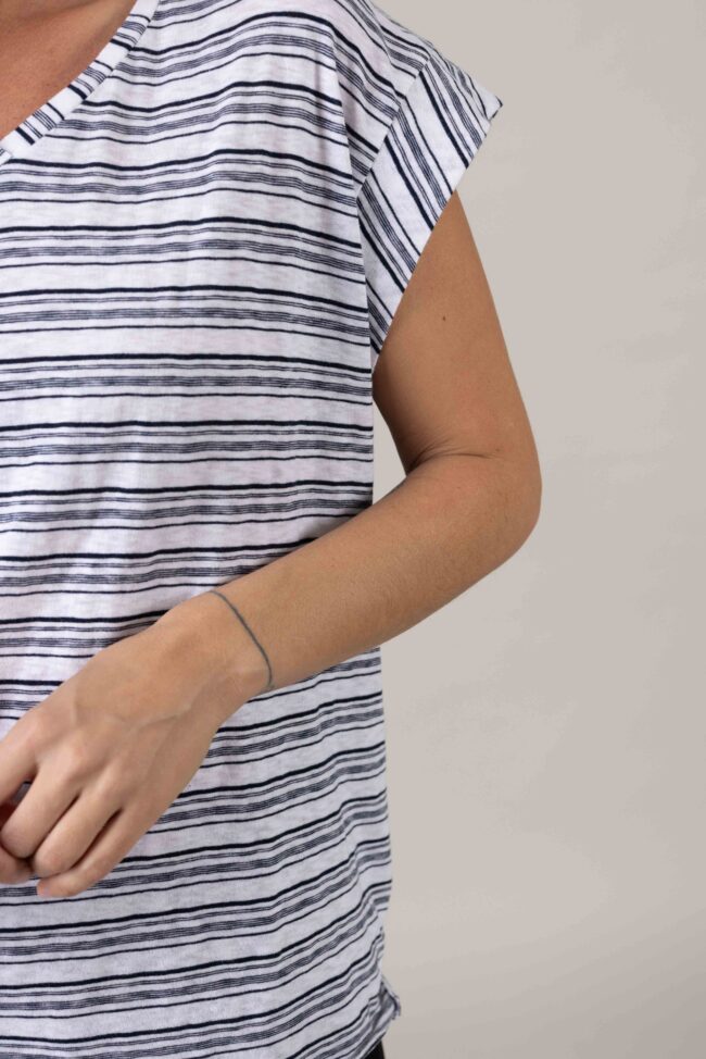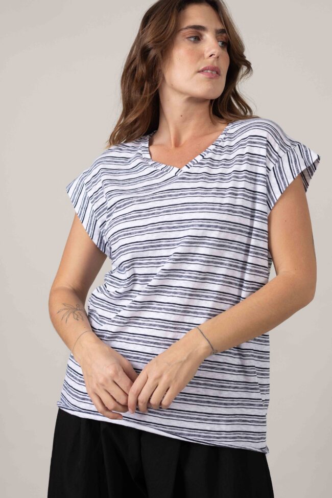 חולצת בייסיק עם מחשוף וי, שרוול קטן ושליץ בצד.