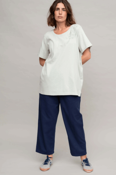 חולצת בייסיק עם מחשוף עגול ורקמה