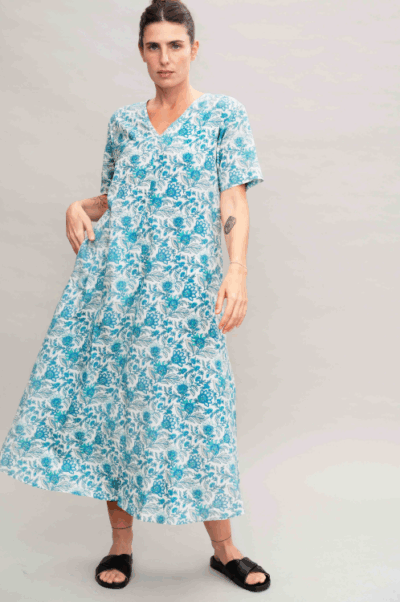 שמלה בגזרת A, מחשוף וי וכיסים