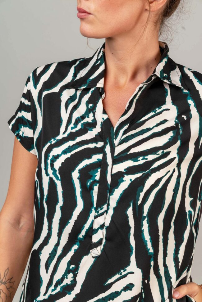 שמלת גלביה עם כיסים וצווארון.