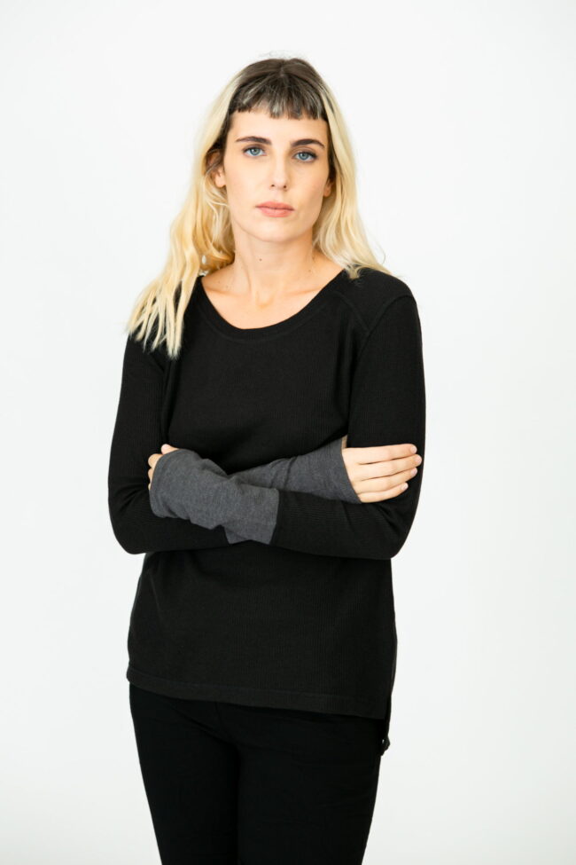 בד וופל, 100% כותנה בשילוב שחור ואפור.