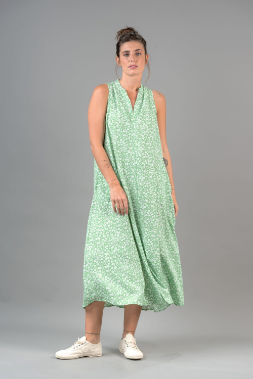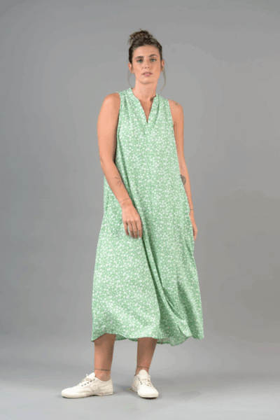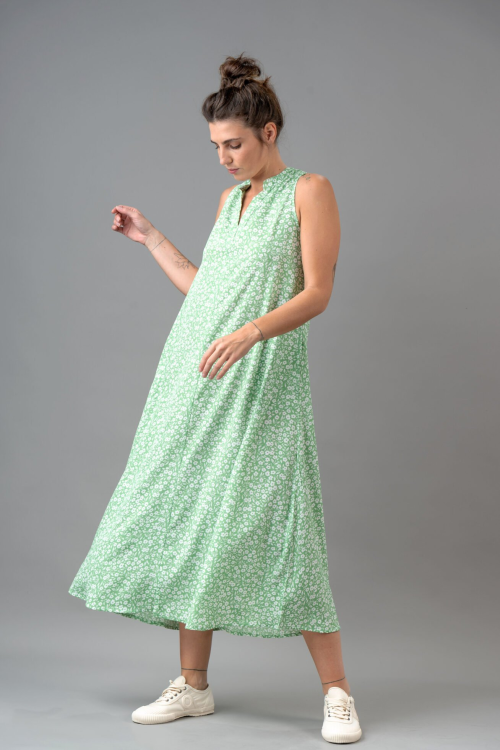 שמלה בגזרת A עם צווארון סיני וכיסים