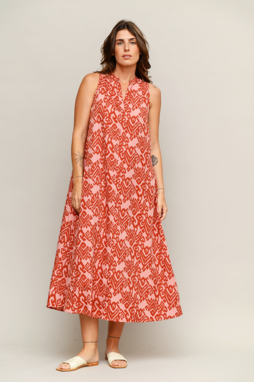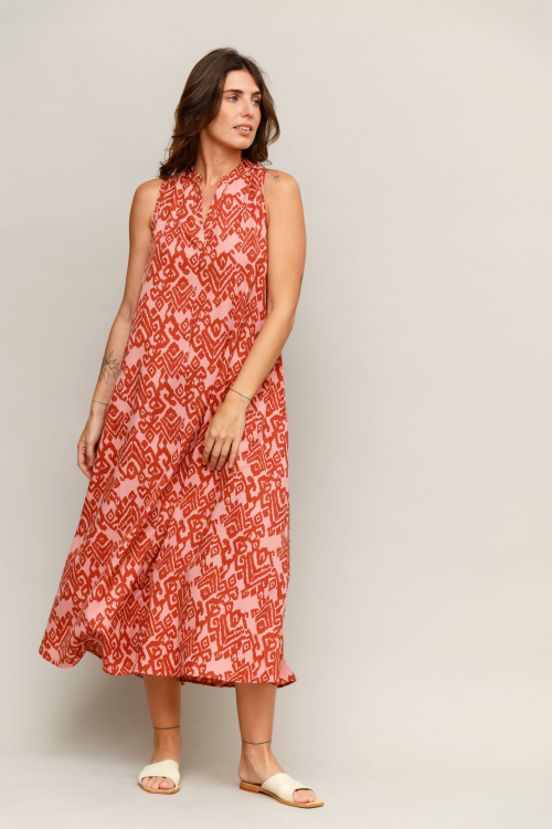 שמלה בגזרת A עם צווארון סיני, מחשוך וי וכיסים