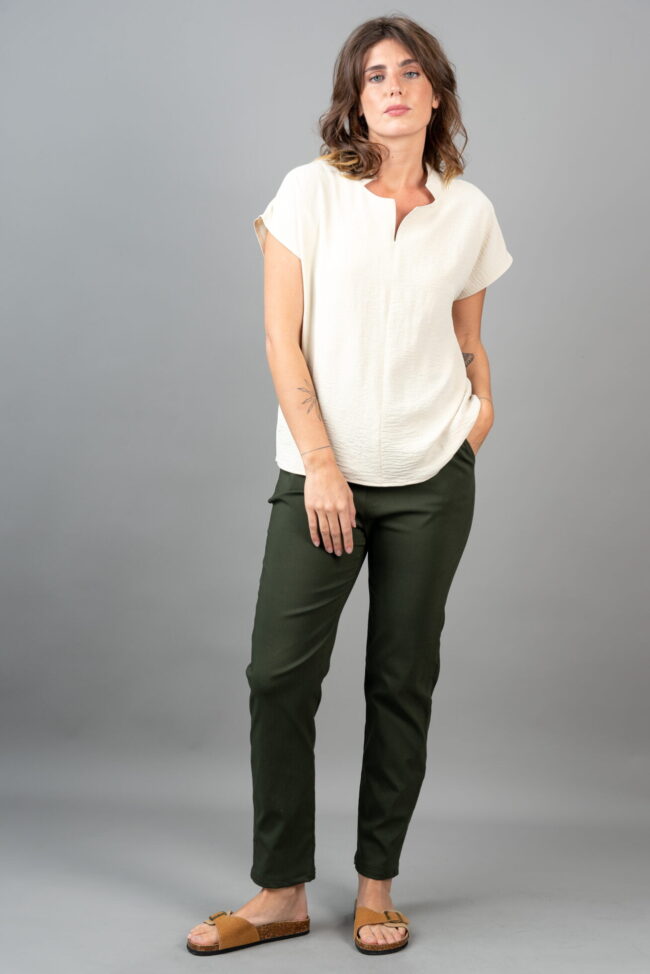 מכנסי סטרצ' גבוהים ונוחים עם גומי ושרוך.