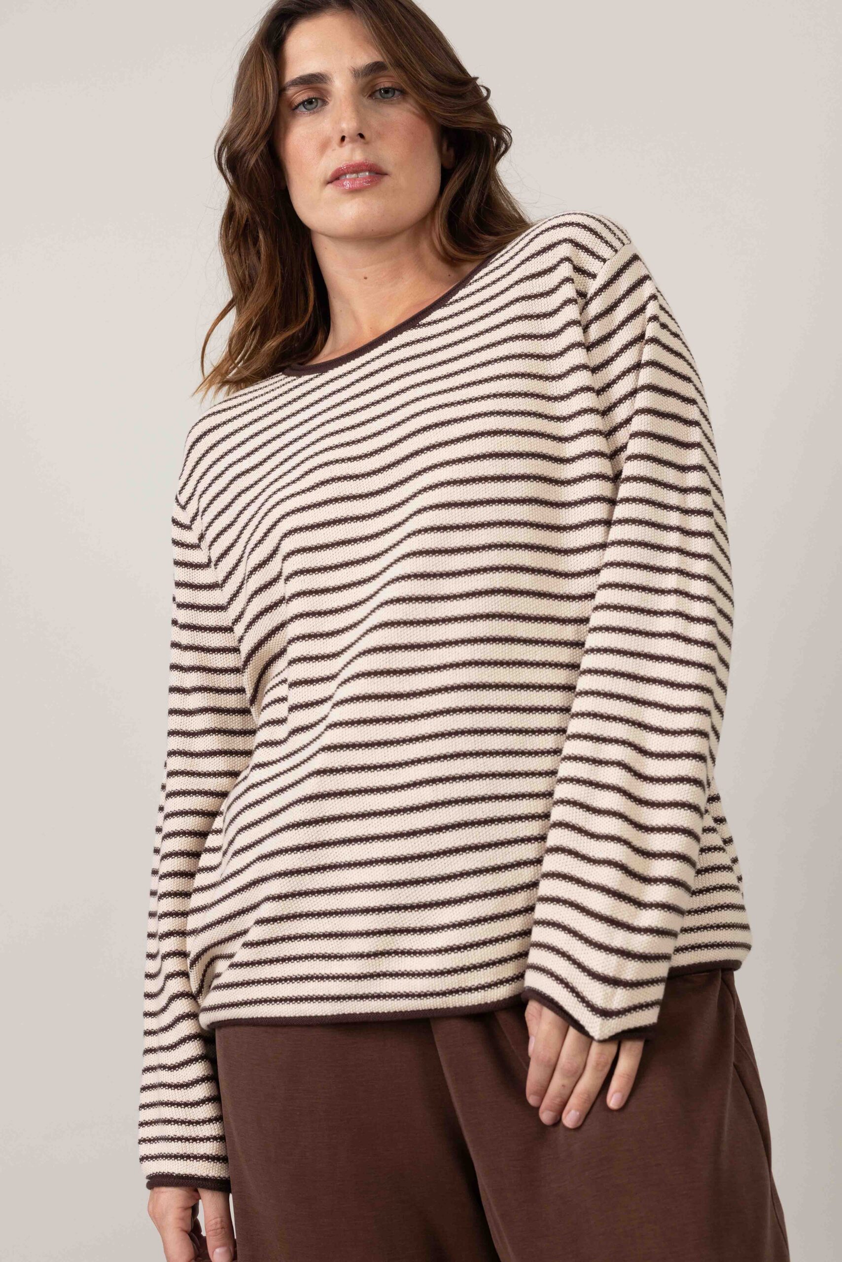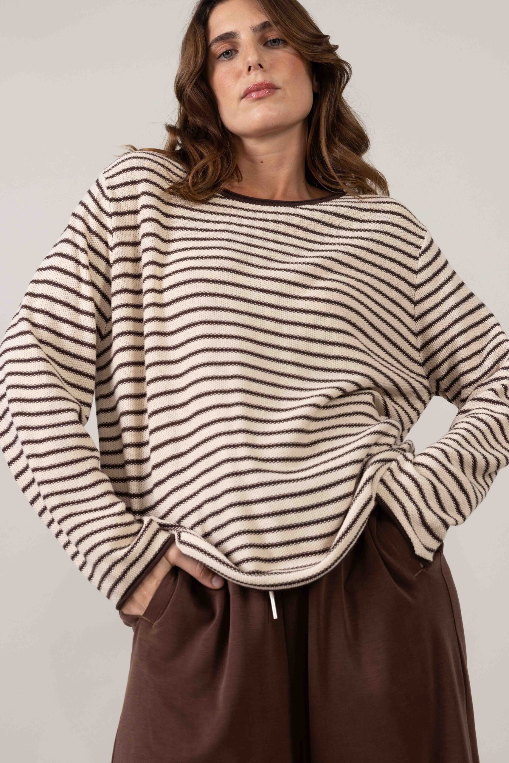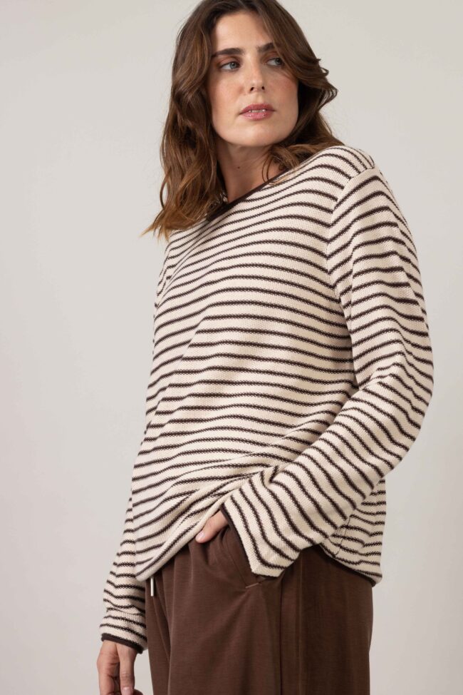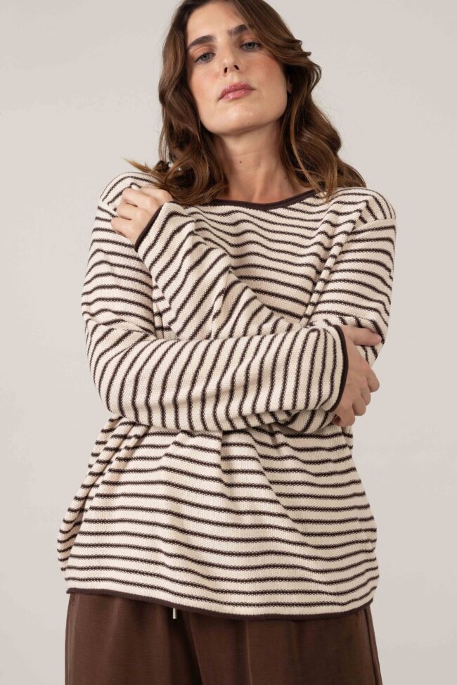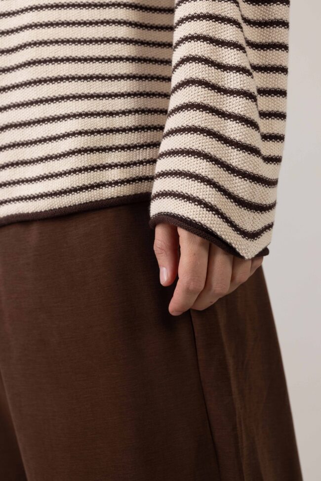 סריגה חלקה של לולאות קטנות אחידות בהדפס פסים דקים