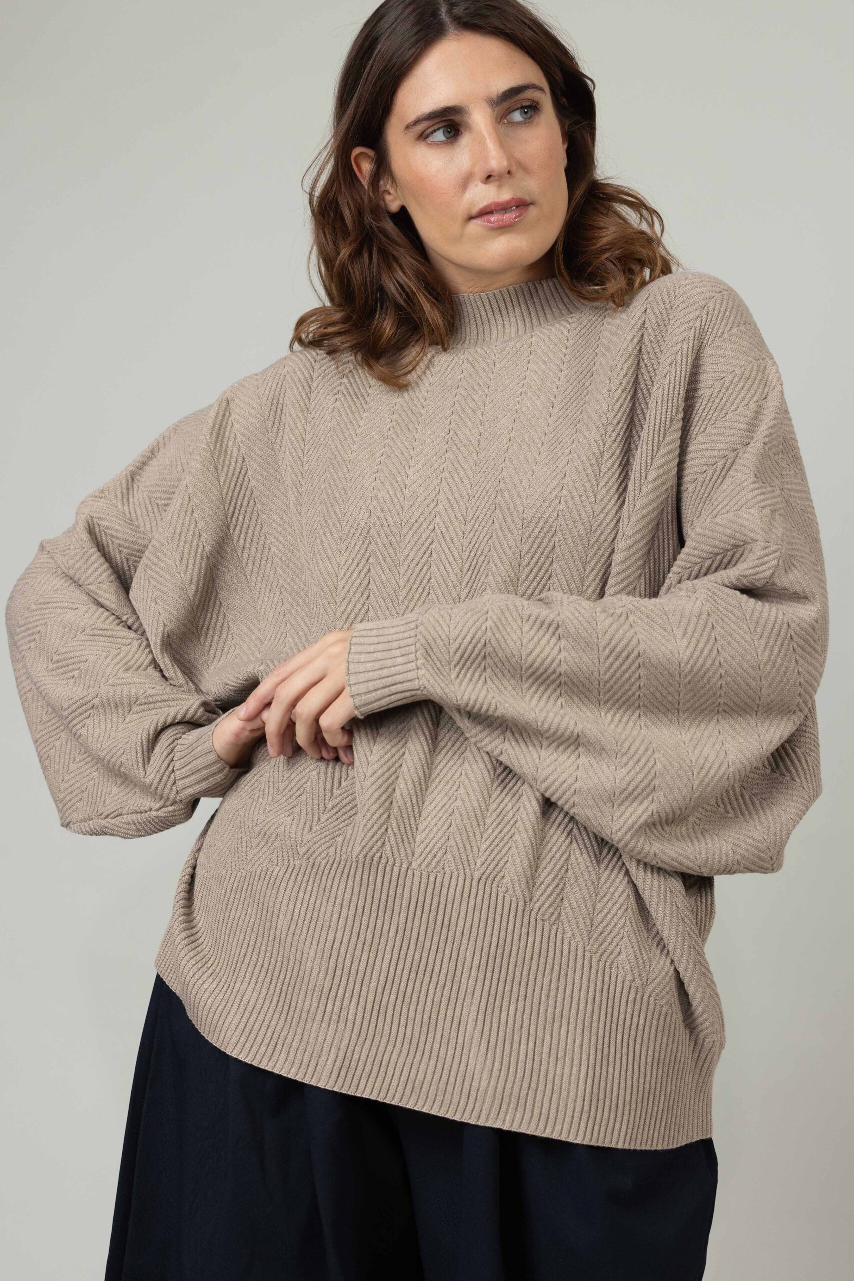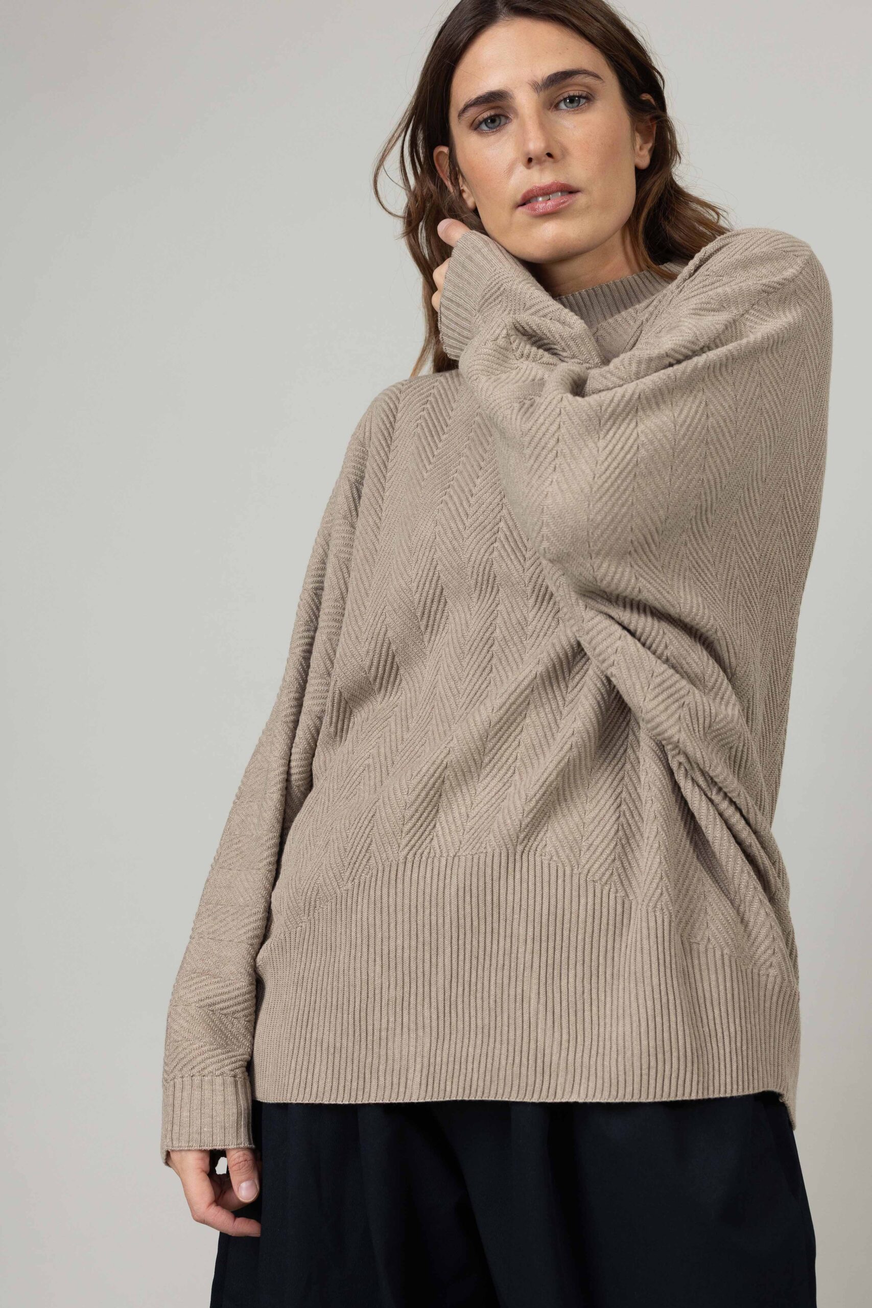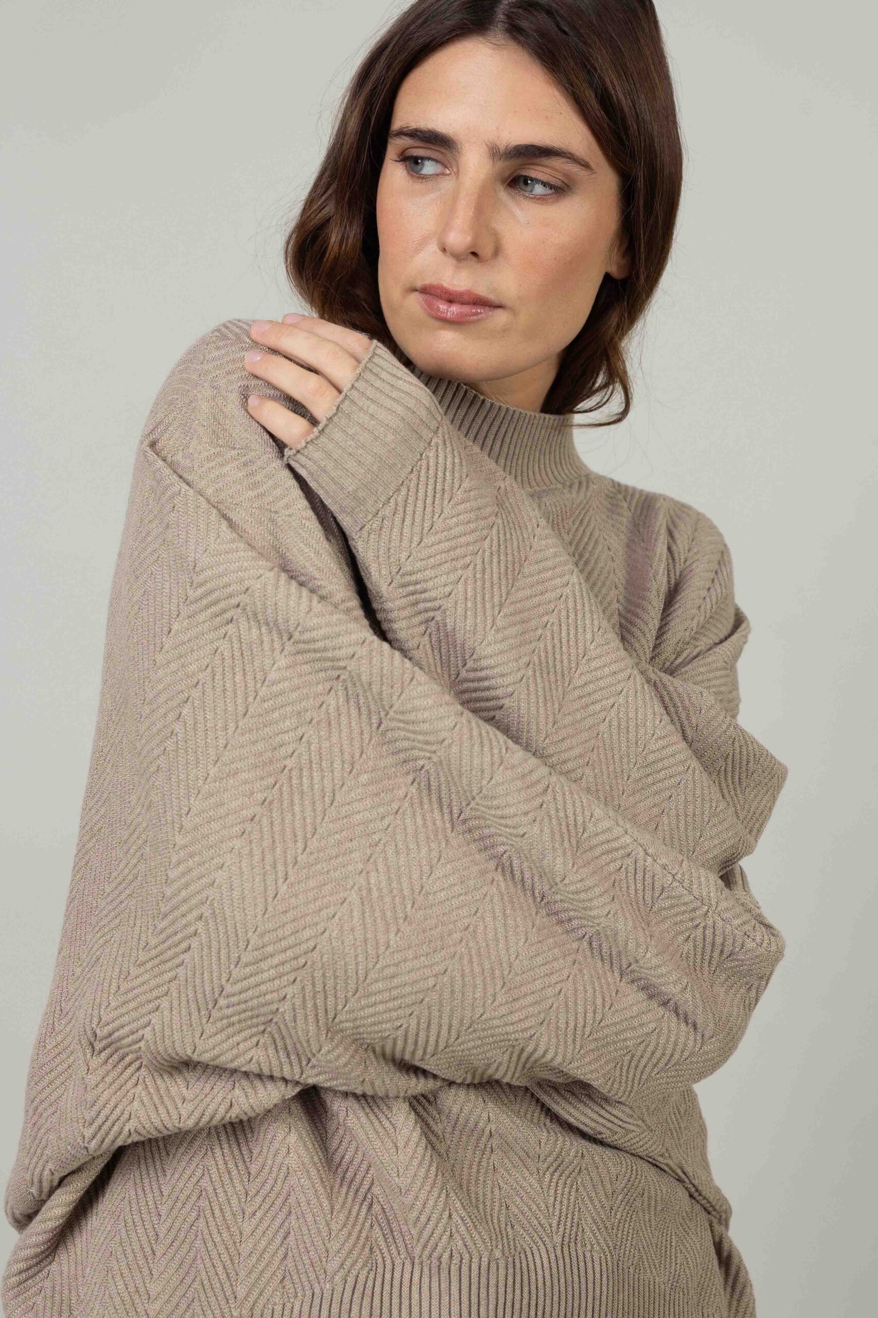סריג אוברסייז בגזרת עטלף בטקסטורת אדרת גד