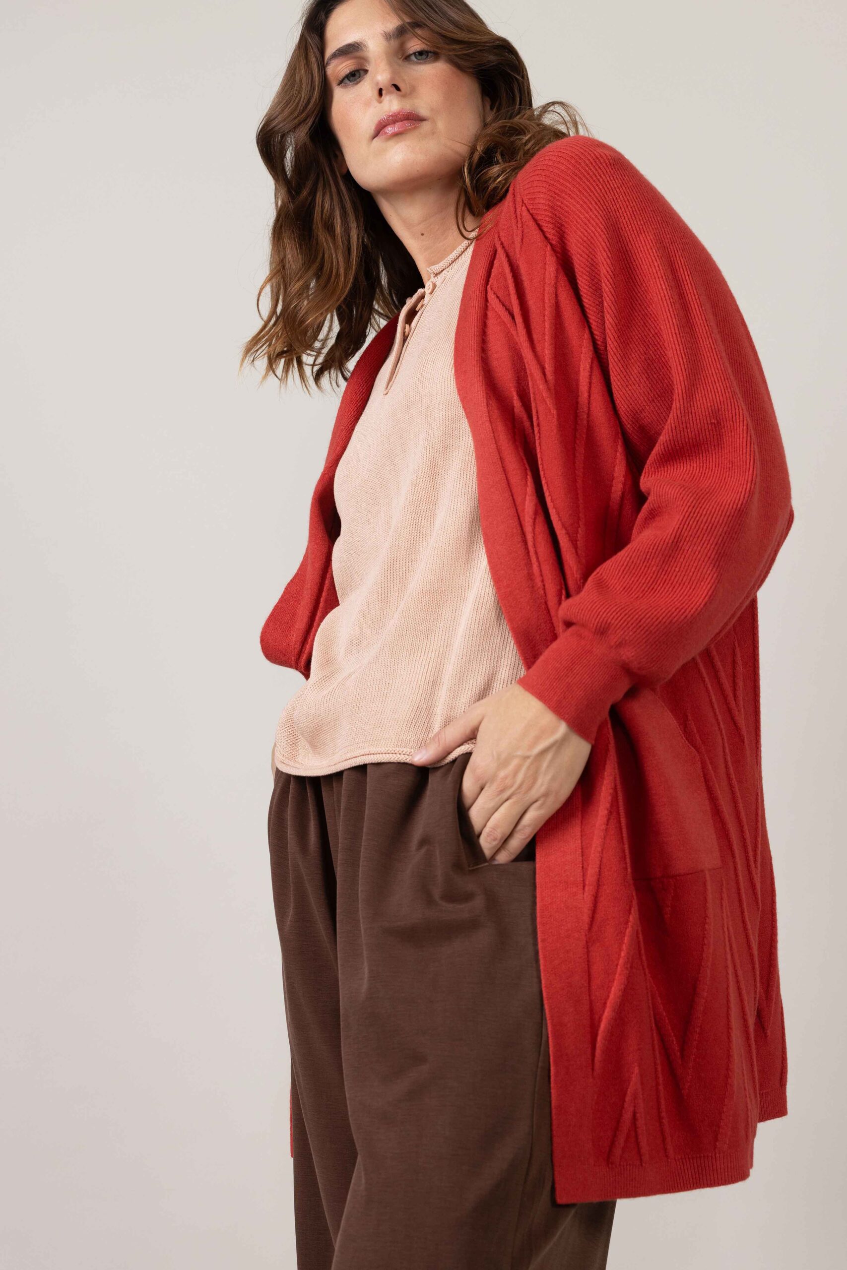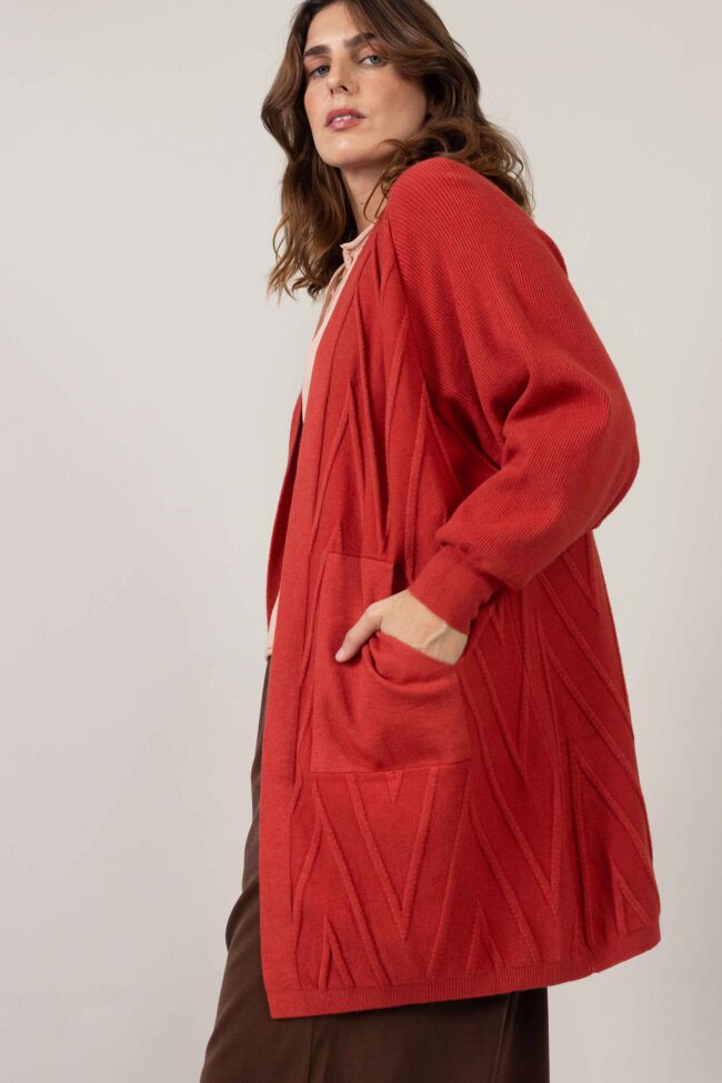 קרדיגן פתוח בגזרה משוחררת וכיסים