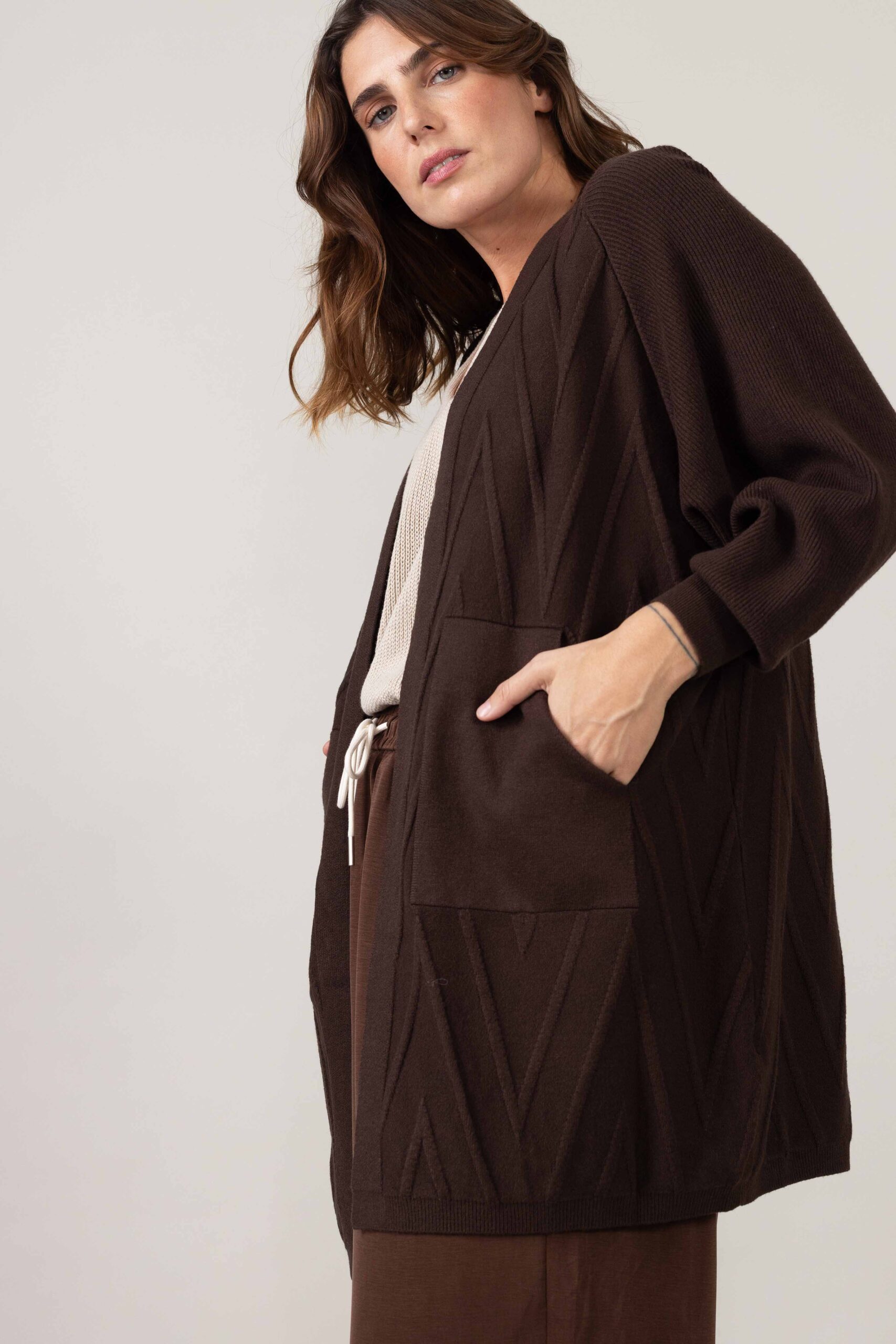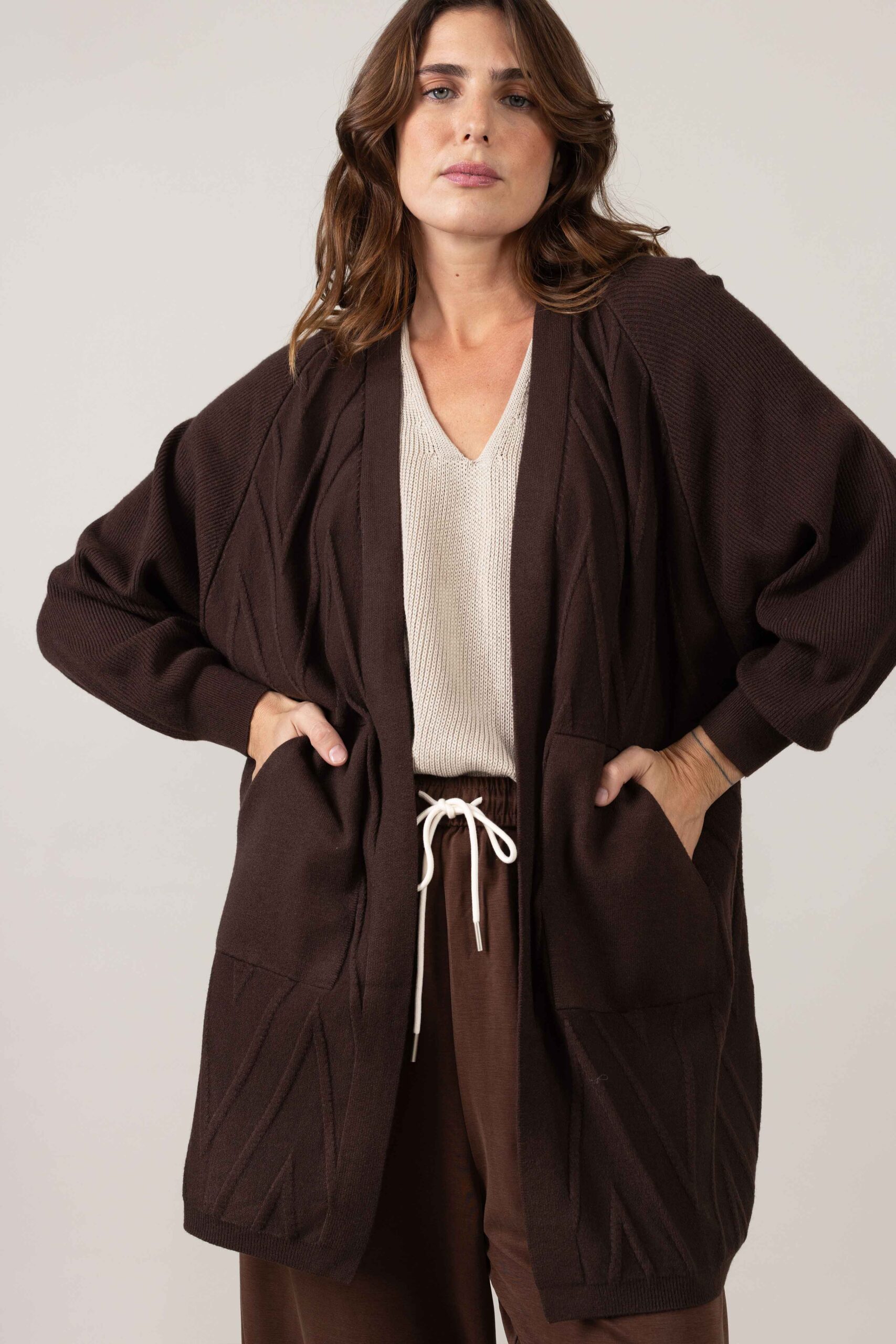 קרדיגן פתוח בגזרה משוחררת וכיסים
