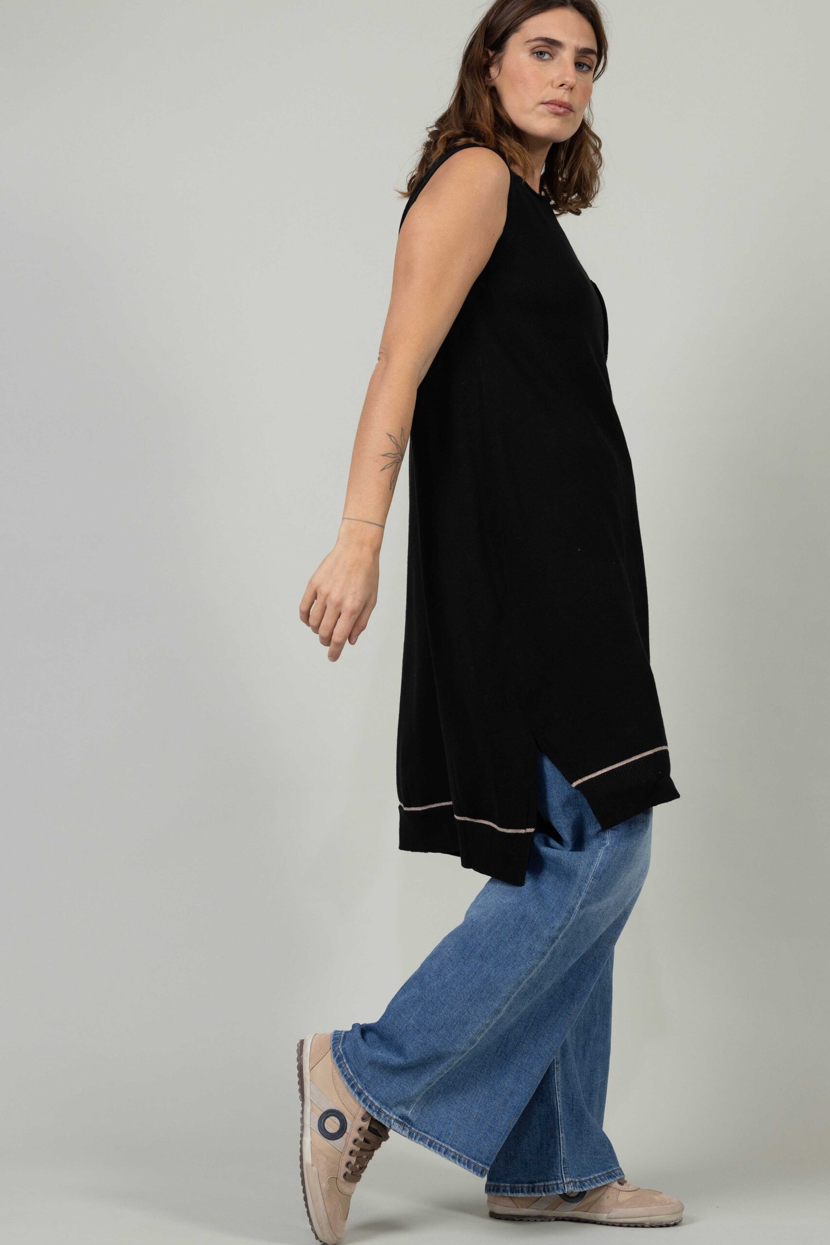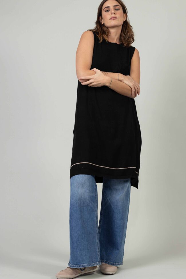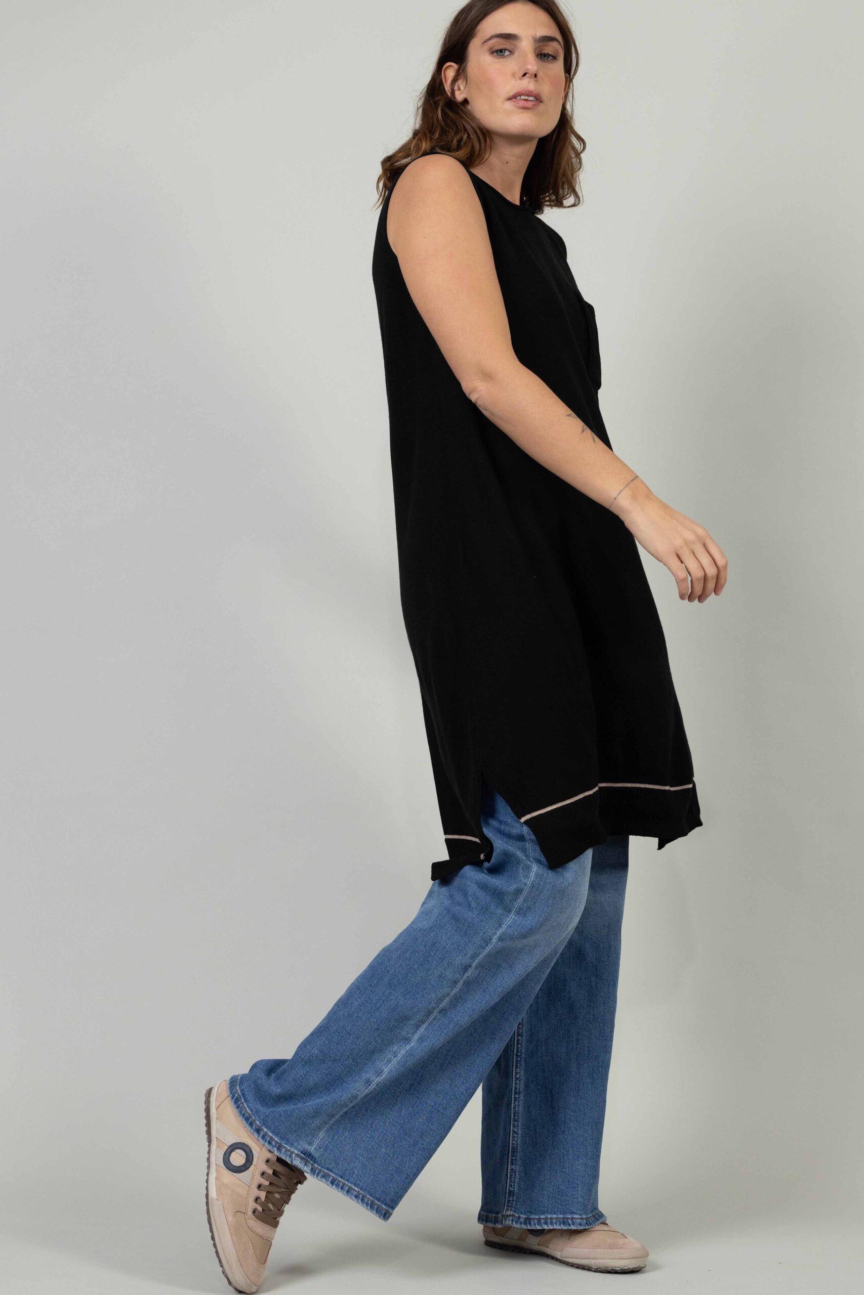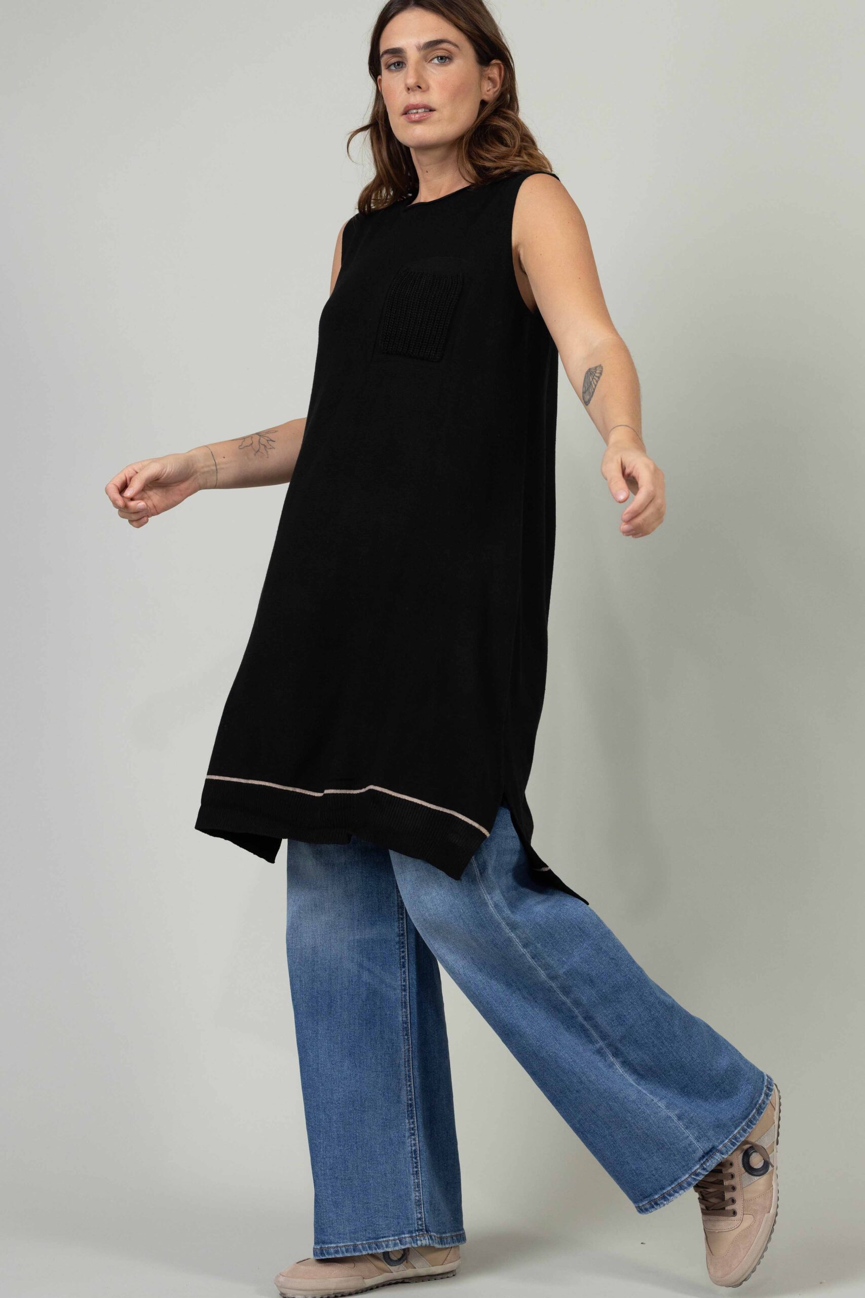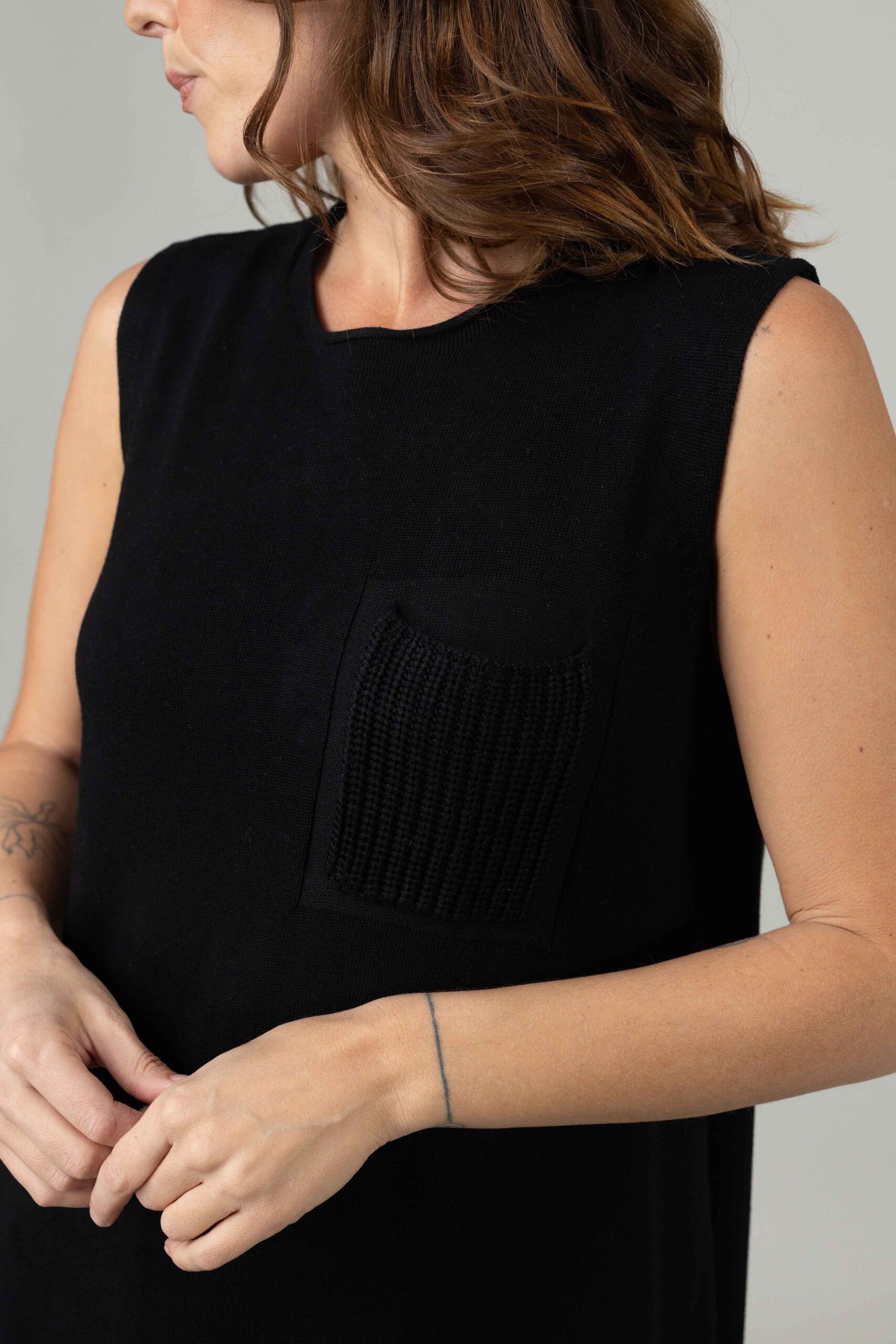טוניקת סריג ללא שרוולים עם כיס מקדימה