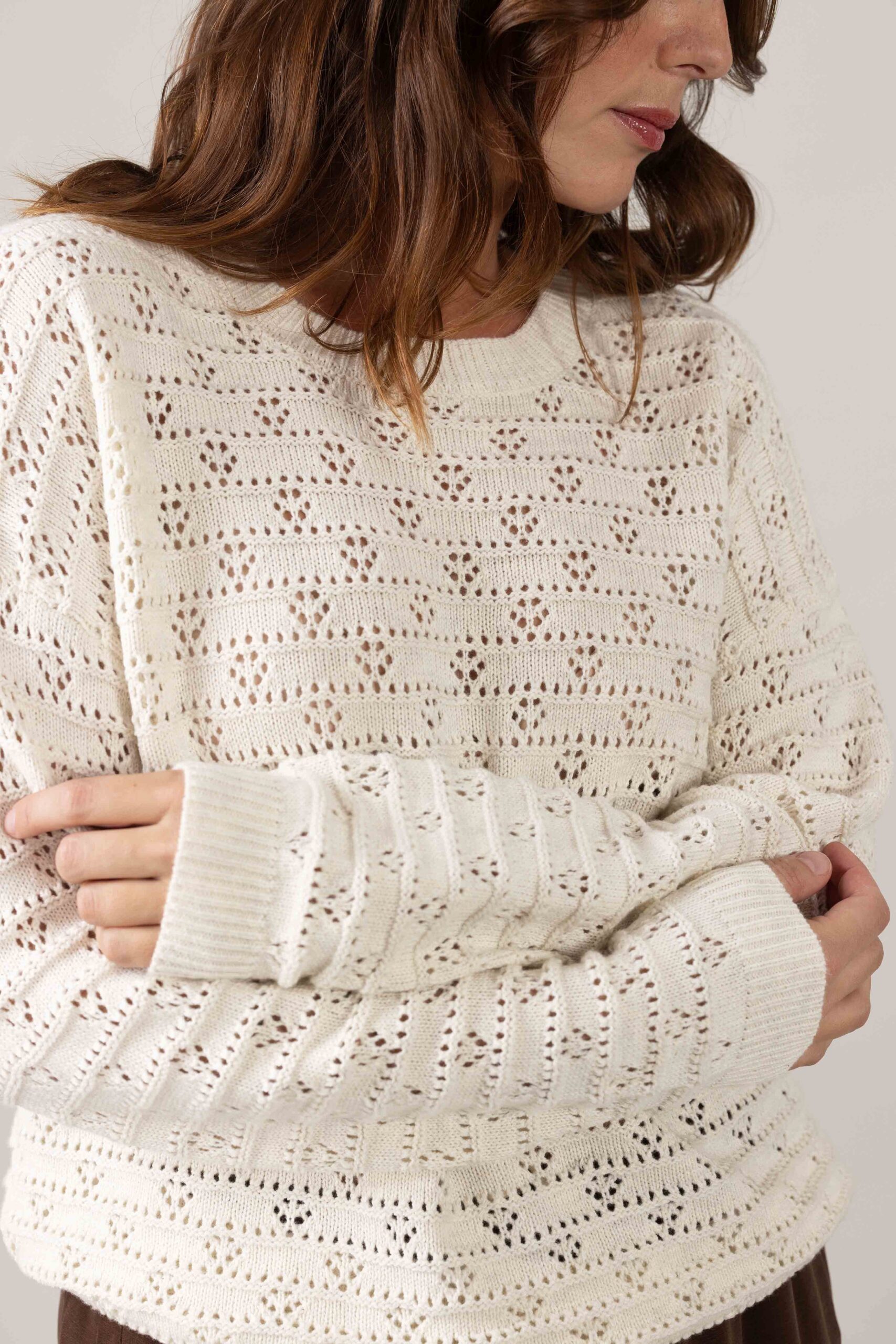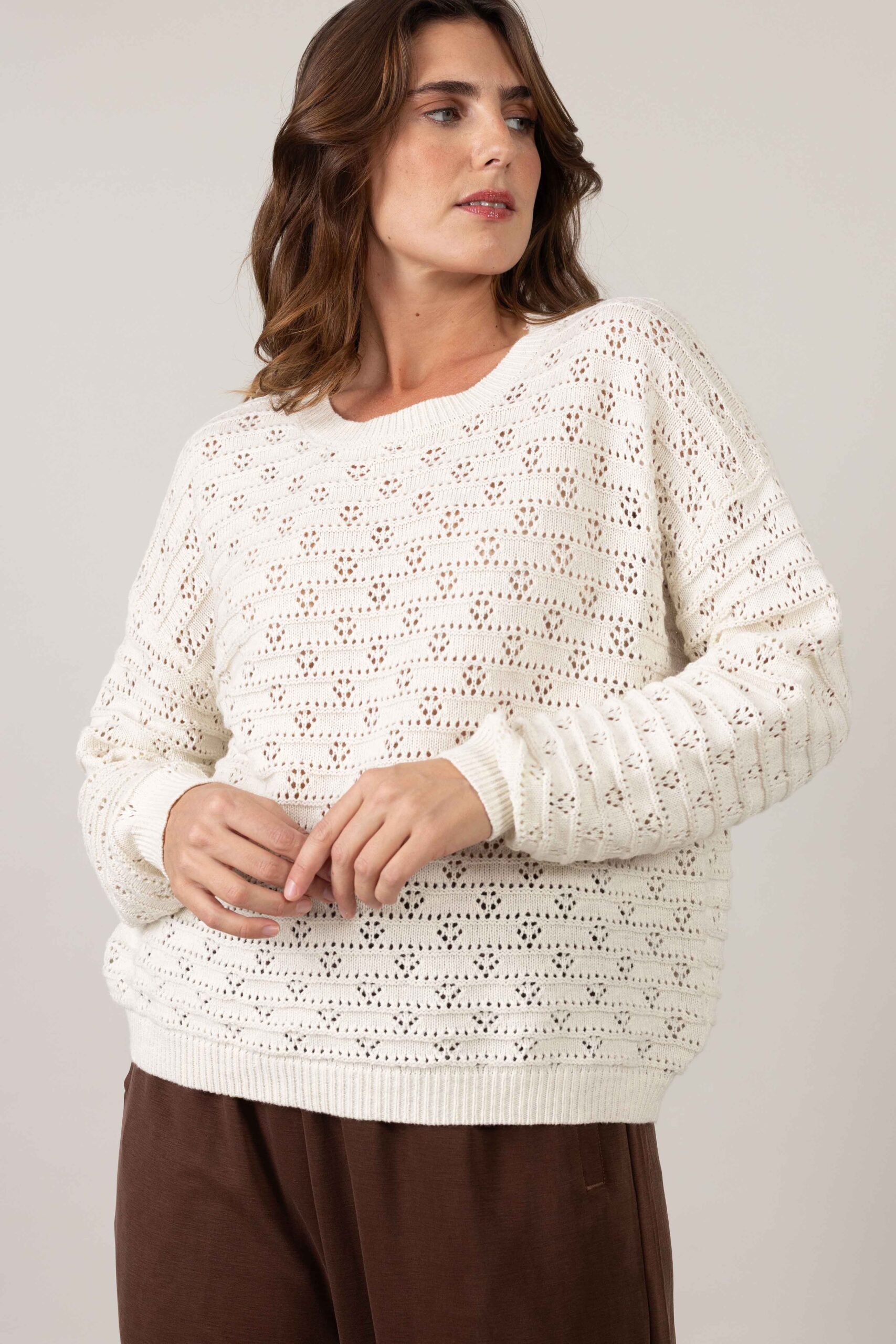 סריג קצר בגזרה רחבה בטקסטורת תחרה