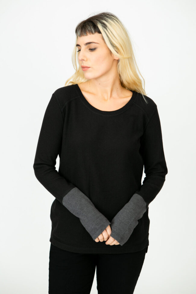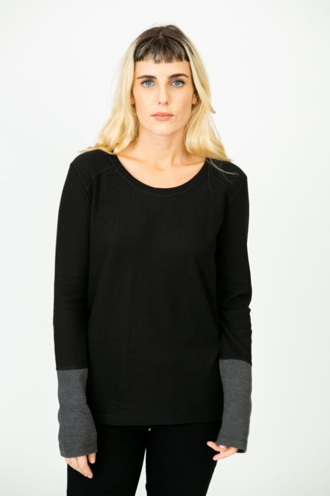 בד וופל, 100% כותנה בשילוב שחור ואפור.